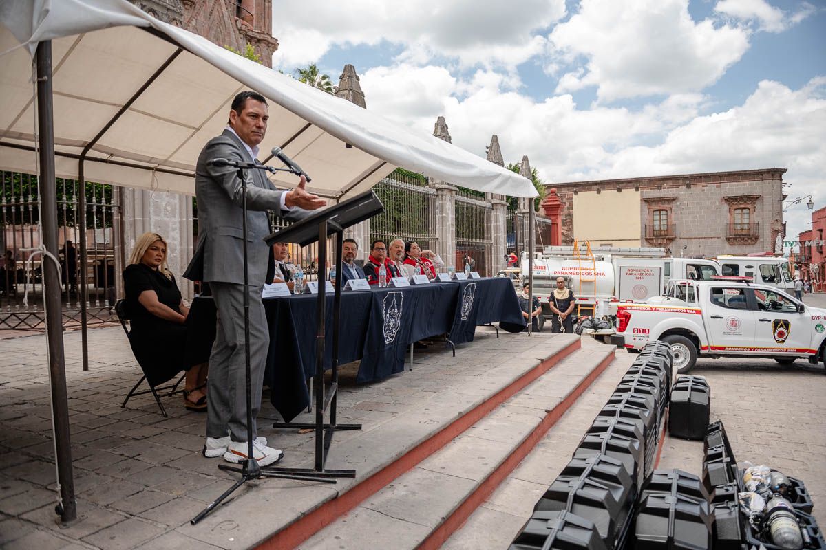Desde la explanada del Jardín Principal, en un evento a cargo de Bomberos y Paramédicos SMA, Mauricio Trejo, subrayó el invaluable trabajo que este grupo ejemplar realiza diariamente, para mantener la paz y la tranquilidad en el municipio.
